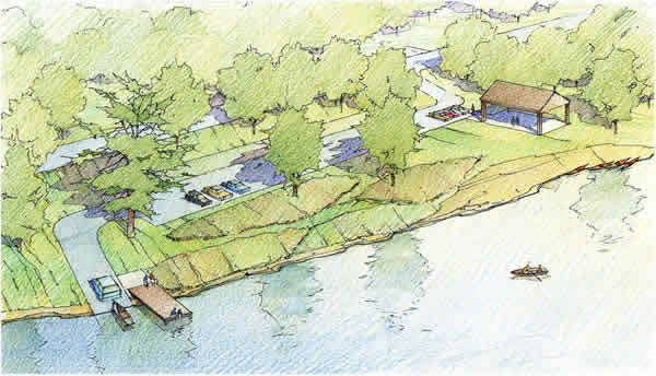 Banister River & Lake photos Aerial rendering of landing upgradesAerial rendering of landing upgradesSunset on the lakePilings from the historic King’s Bridge on the Banister RiverTaking a break on the Banister RiverTaking a break on the Banister RiverKayaking on Banister LakeBelow the damthe Rock HouseMan’s best friendPutting inKayaking on the lakeGreat Blue Heron on a dock2 bridges